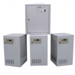 Стабилизатор состоит из трех напольных однофазных силовых блоков, настенного блока коммутации и комплекта кабелей для соединения всех блоков между собой.