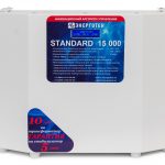 STANDARD 15000 ‒ электронный стабилизатор на основе 16-ступенчатого автотрансформатора с тиристорным управлением. Обеспечивает точность стабилизации на уровне ± 3 % и рассчитан на непрерывную работу в промышленных и бытовых сетях электроснабжения, с номинальным фазным напряжением 220 вольт, частотой 50 герц.